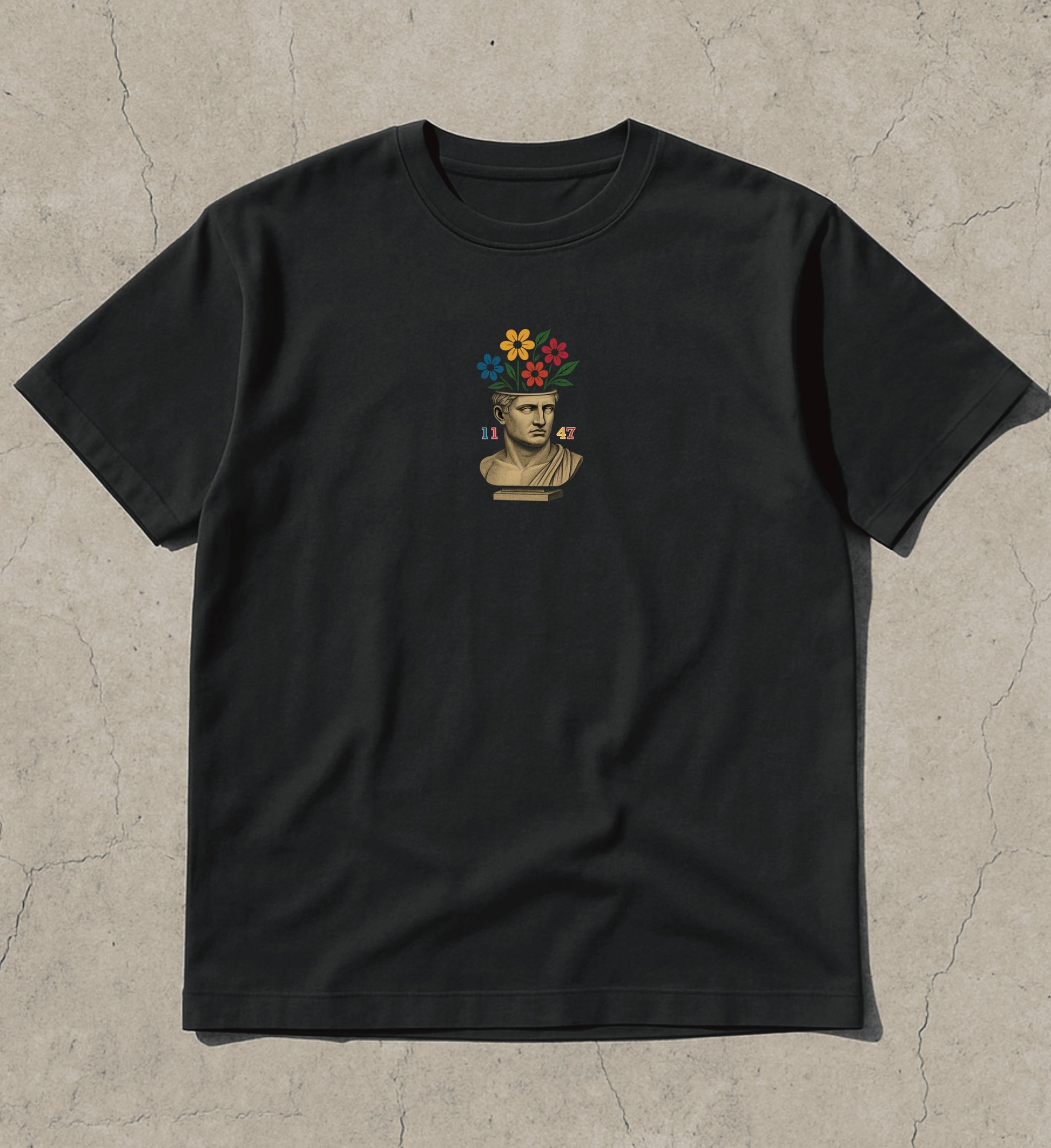 This tee features a Greek-inspired statue bust adorned with vibrant, blooming flowers, symbolising duality in design. Combining classical elements with a contemporary modern twist, this piece of wearable art is a perfect representation of the "Open Minded" mindset.
